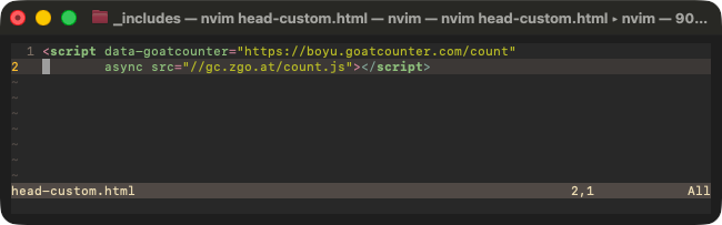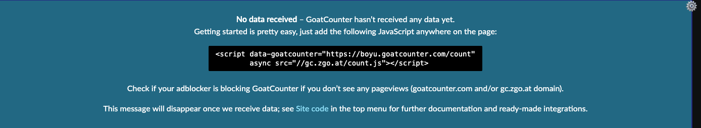 https://boyu.goatcounter.com(replaceboyuwith your actual code). If not, you can manually navigate there. Once there, copy the provided script.