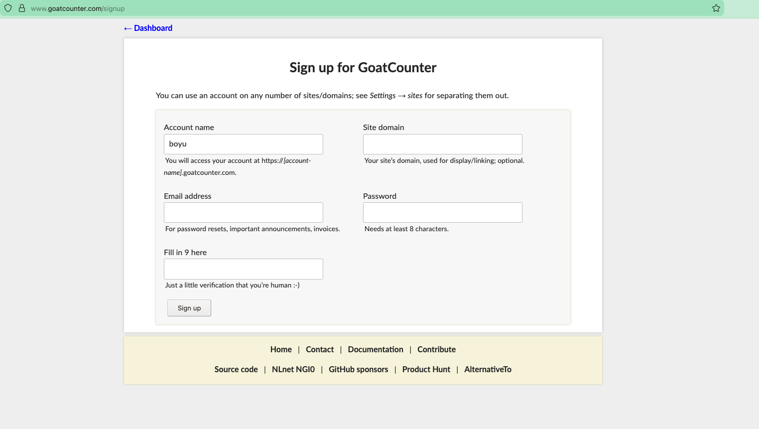 Go to goatcounter.com/signup to sign up.